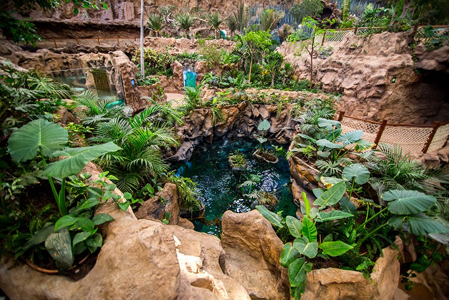 Gedicht des Meeres (Poema del Mar), ein Aquarium, das sich in der Stadt Las Palmas von Gran Canaria befindet, das das längste Becken der Welt besitzt. Es ist ein durchgehender Wasserraum mit einer Länge von 37 Metern, einem Fassungsvermögen von über 4.000 Kubikmetern Wasser, mit 350 Arten 35 Ökosystemen, in Gehegen, in denen Sie nicht nur Thunfische, Haie, schwarze Piranhas aus Peru, Süsswasserrochen und Fische ohne Augen sehen können, sondern sogar Krokodile.