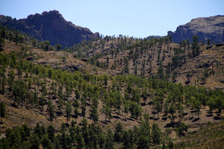 Nach etwa der Hälfte unseres Aufstieges bemerken wir, daß die Insel sich in eine grüne verwandelt. Die üppige Vegetation der Landschaft verwundert die Besucher immer wieder: La Cumbre. Die Wälder der Berge scheinen uns, mit ihren bis Nahe am Straßenrand stehenden Pinien- u. Kastanien-Bäumen einpacken zu wollen. Mann kann jetzt verstehen, warum die Insel als "Miniatur Kontinent" bezeichnet wird. Nicht nur die Landschaft, sondern auch das Klima überraschen uns, da es im Norden viel kühler und feuchter ist als im Süden, wo sie wahrscheinlich untergebracht wurden.
